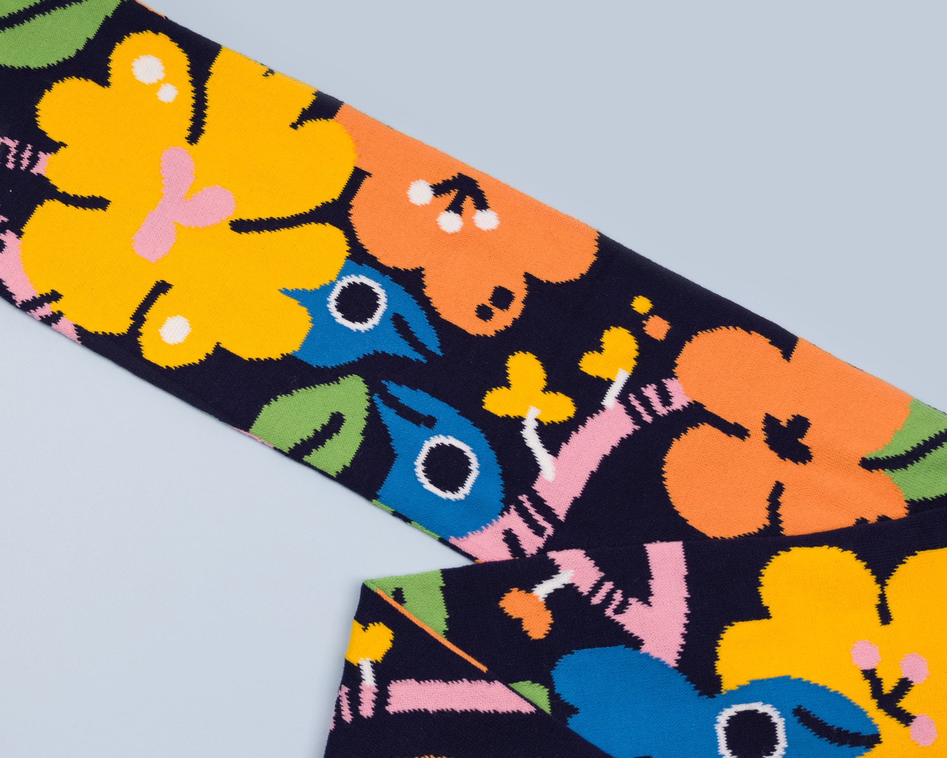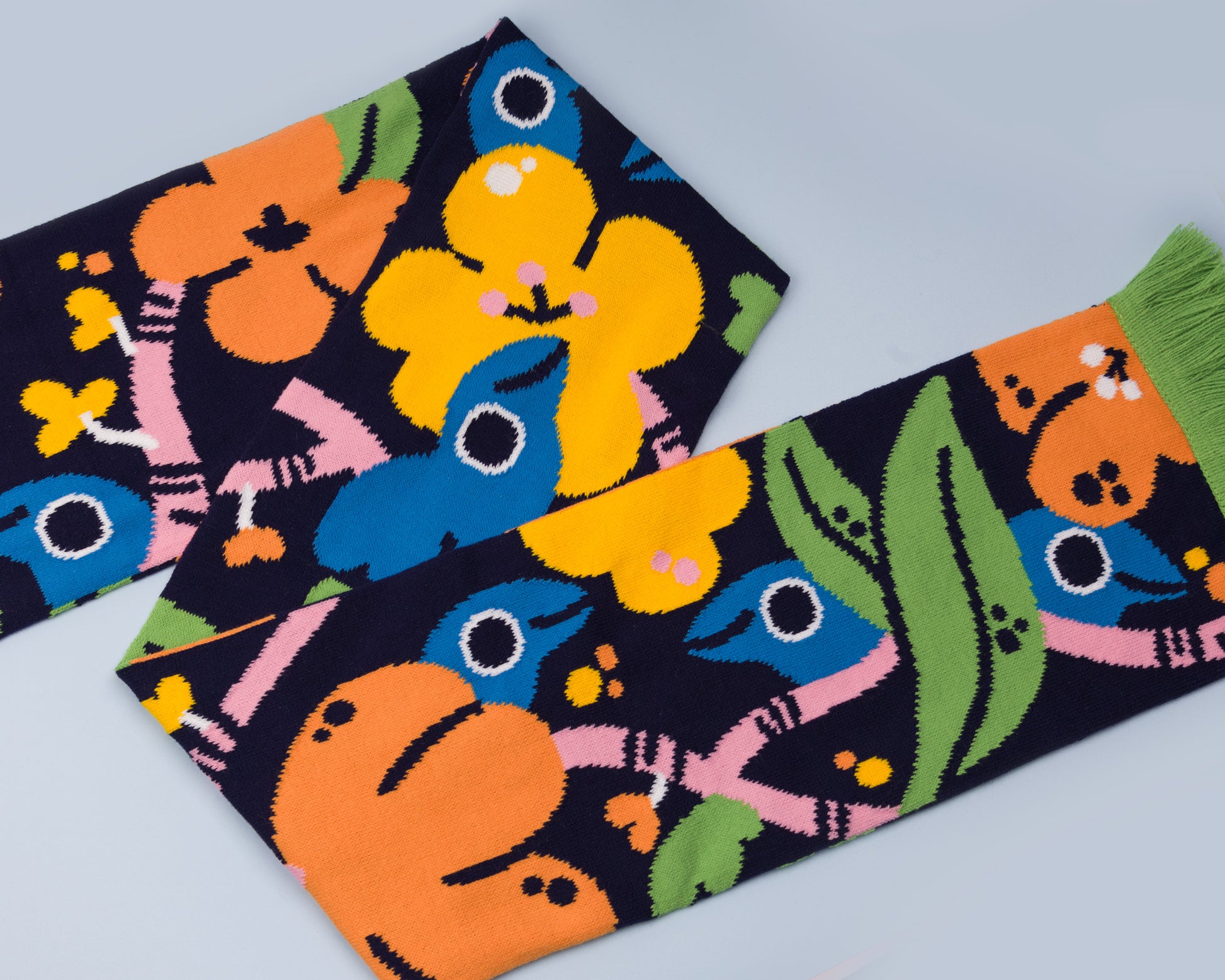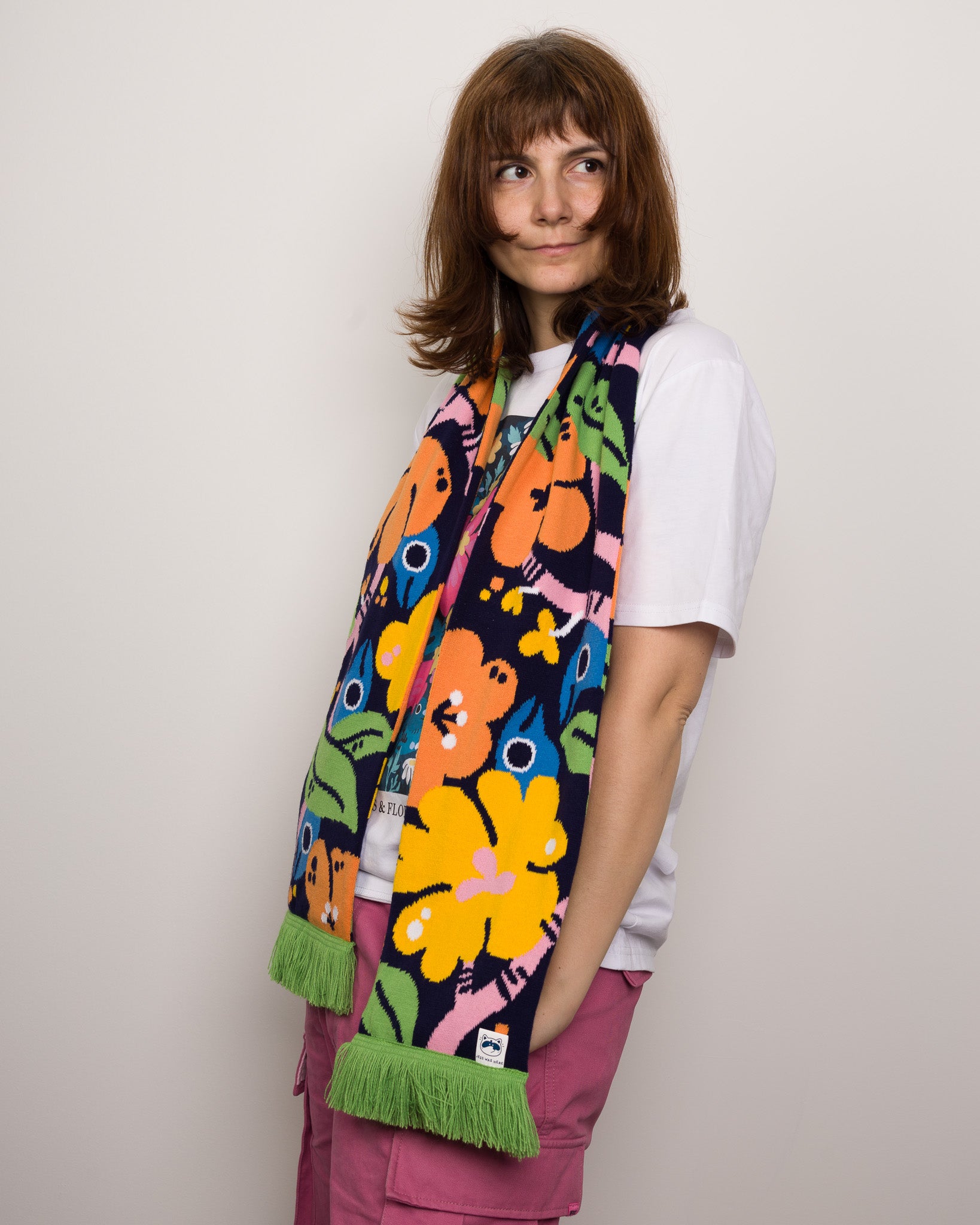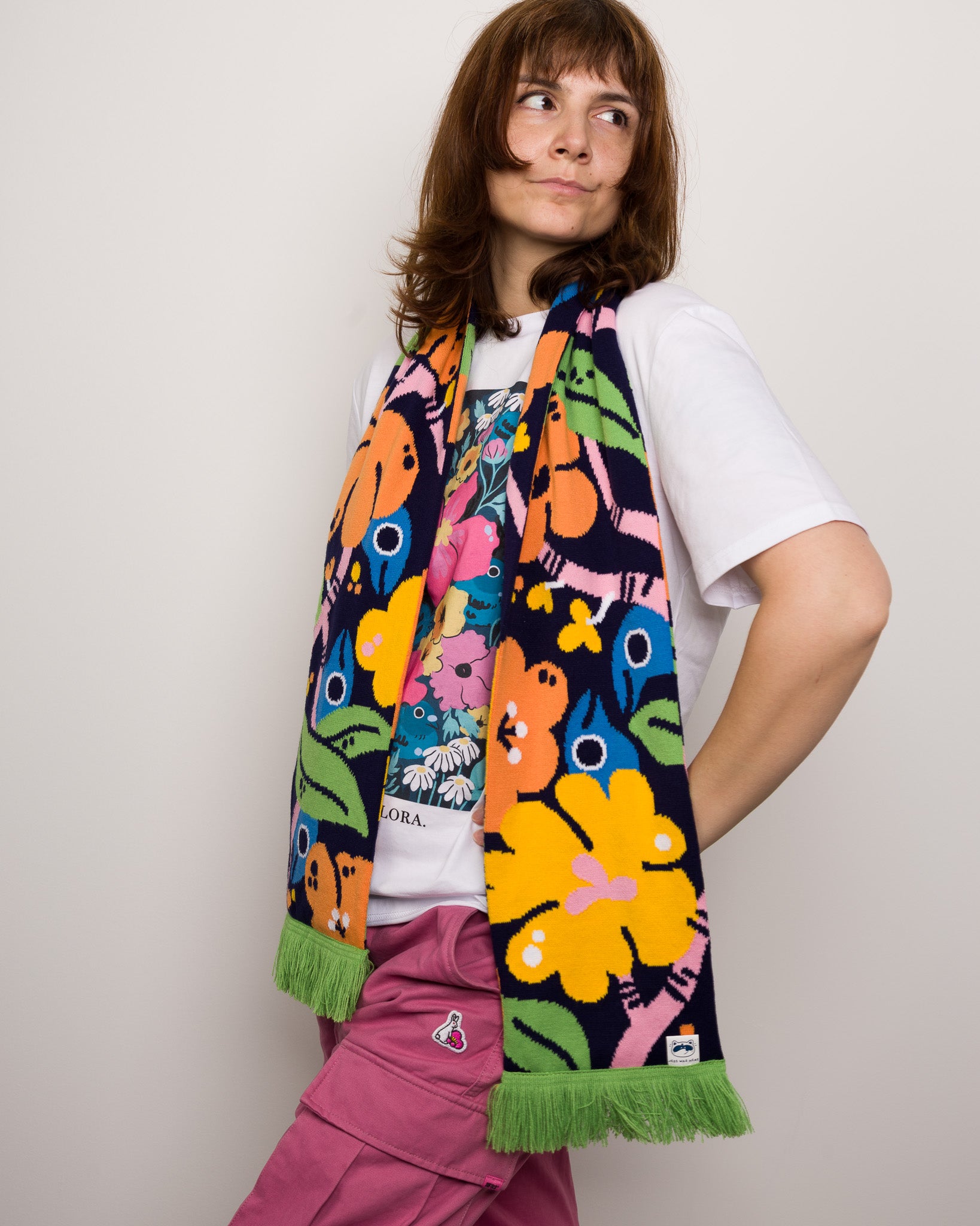 Finally your outfit is complete. Get cozy with a super soft and funky scarf!