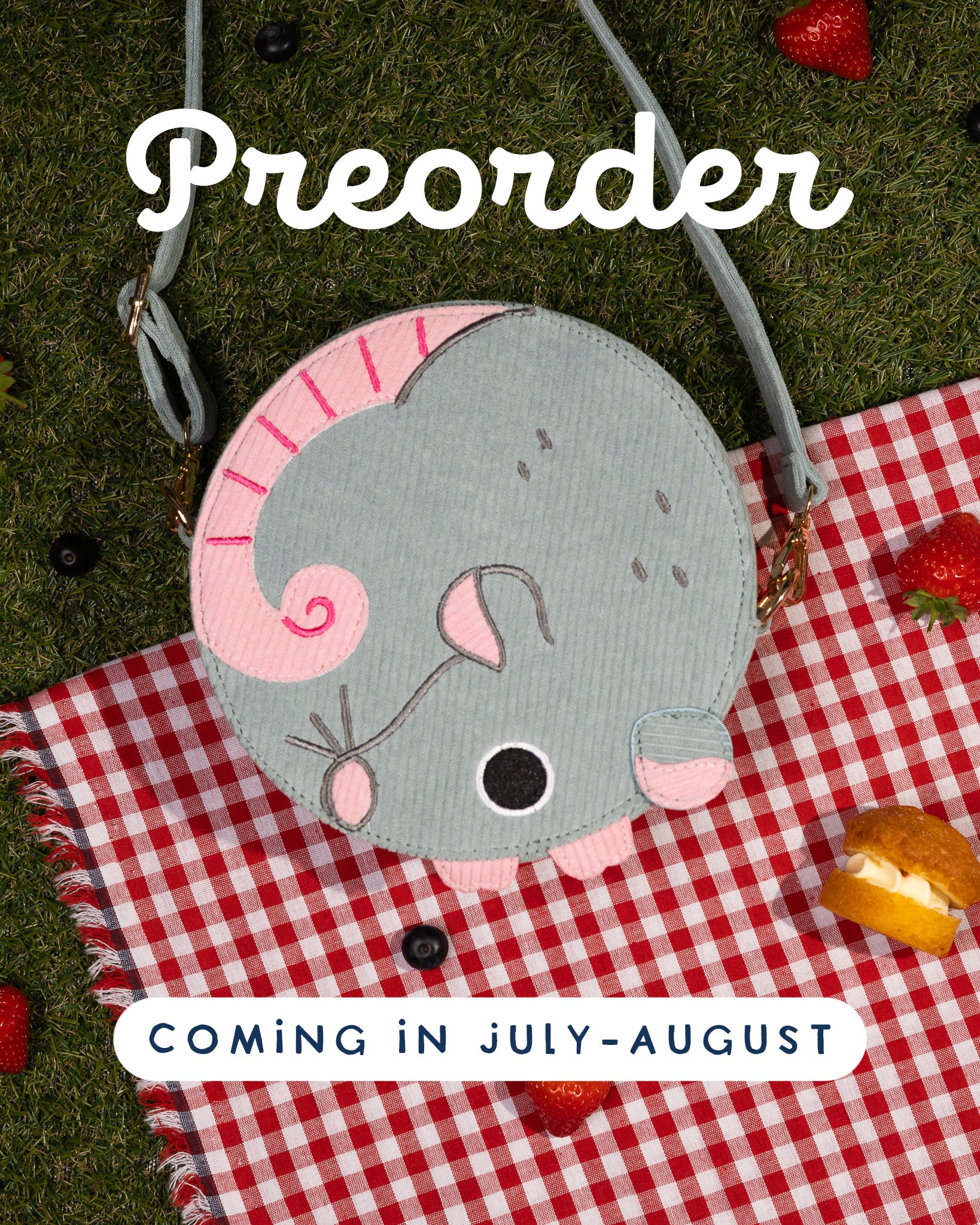 This cozy corduroy bag features an embroidered rat on one side and is designed to comfortably hold all your essentials—phone, wallet, glasses and keys.
